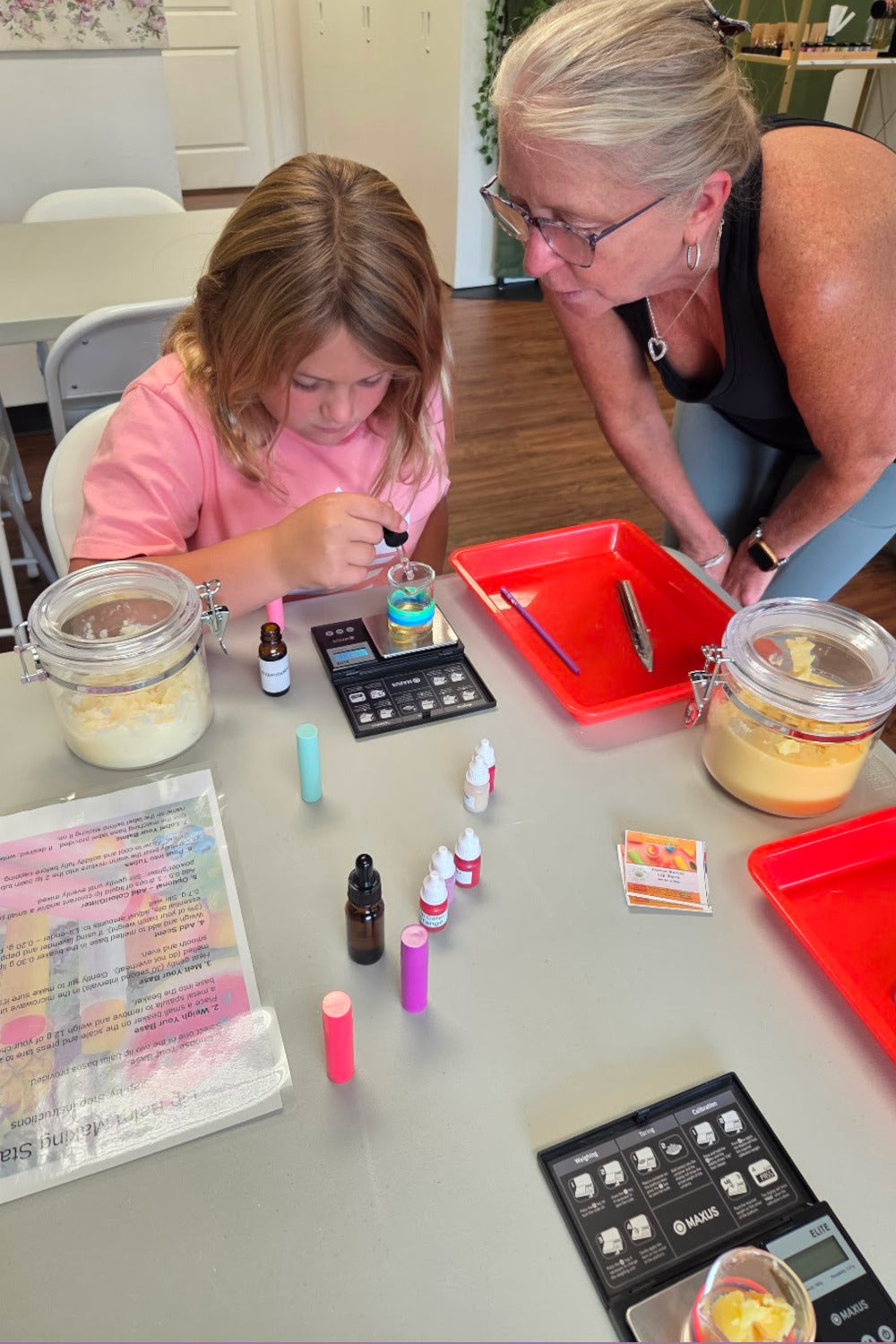 Participants make five lip balms each, choosing from a variety of flavor oils and color options. Everyone leaves with a set of smooth, personalized balms they crafted by hand.