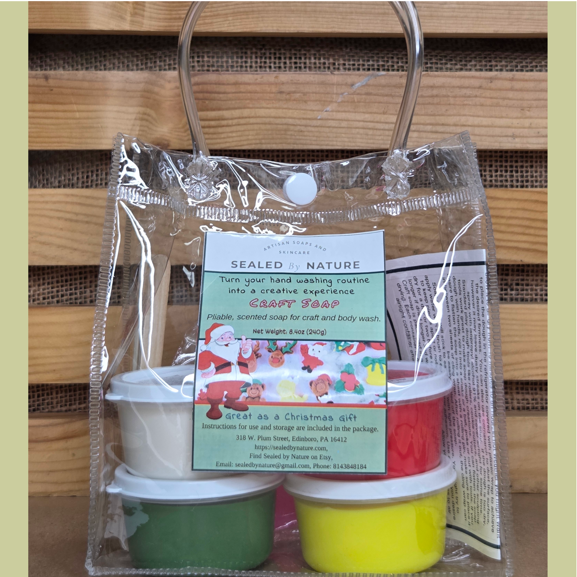 Celebrate the season with creativity. Our Christmas Craft Soap Kit lets you sculpt your own festive, scented soaps using a reusable holiday-themed mold. With soap dough in classic Christmas colors—red, green, white, and yellow—kids and adults can craft ornaments, trees, stars, and more. Each piece becomes fun, functional mini soaps that add a touch of cheer to any sink or bath. Ideal for holiday parties, family activities, and unique handmade gifts. Instructions for use and storage are included in the package.