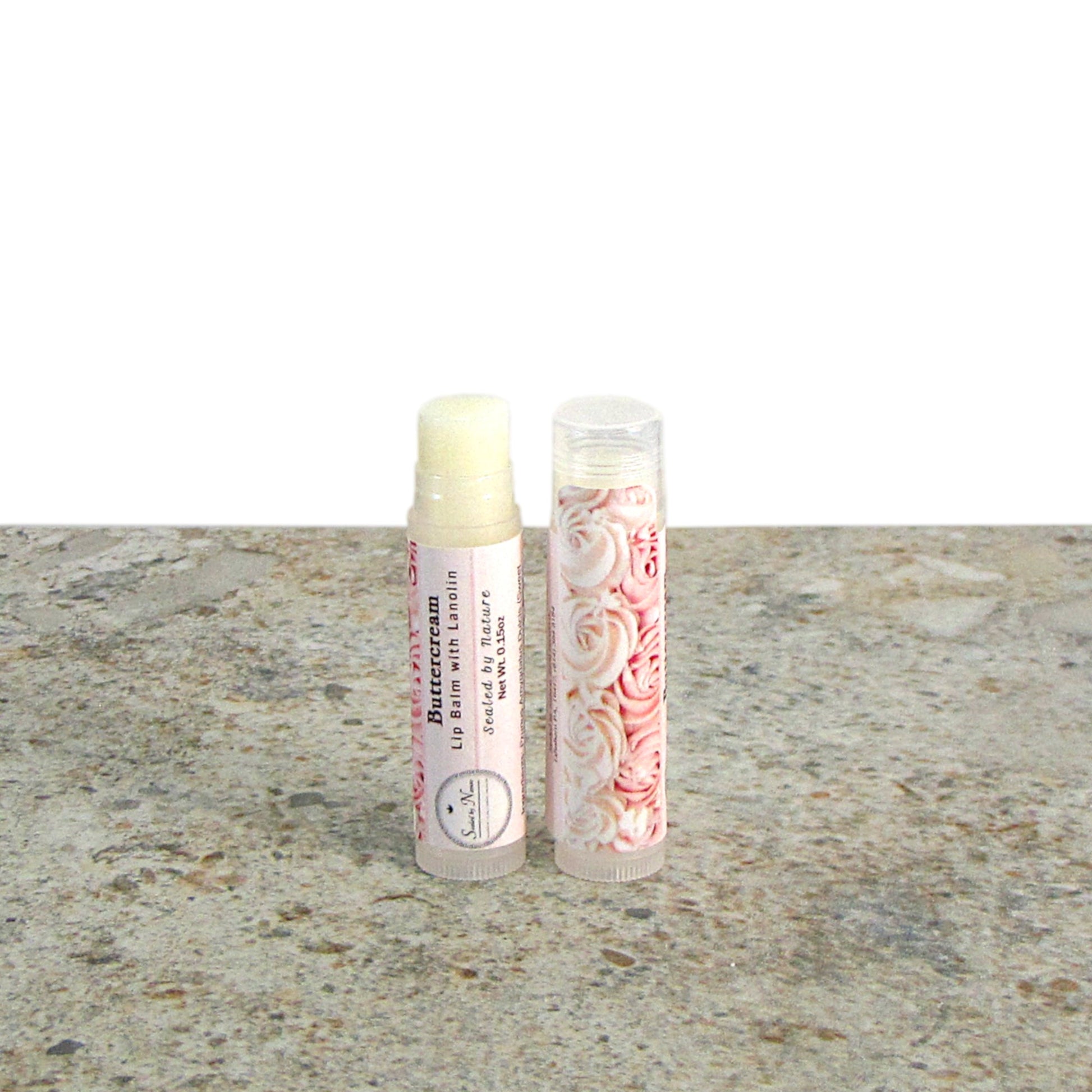 Buttercream lip balm contains Lanolin which is an excellent ingredient for lip products. It is a waxy substance that is highly emollient and prevents water loss. Those that are not sensitive to Lanolin can greatly benefit from its properties.