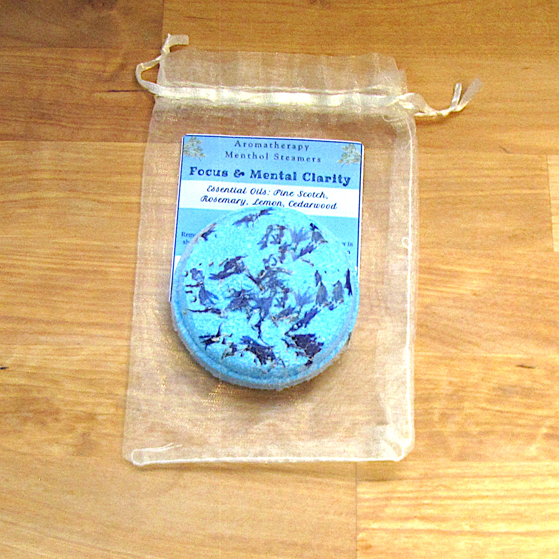 Menthol Shower Steamers are made with carefully selected blends of pure essential oils. Each blend works on our senses to provide the intended effect. Menthol Crystals clear the sinuses, promote deep breathing and increase oxygen intake, thus enhancing the function of essential oils. Dried plants on top of the steamers add their essence to the mineral rich steam. Each steamer comes with an organza bag that will capture the remaining plant material after use.