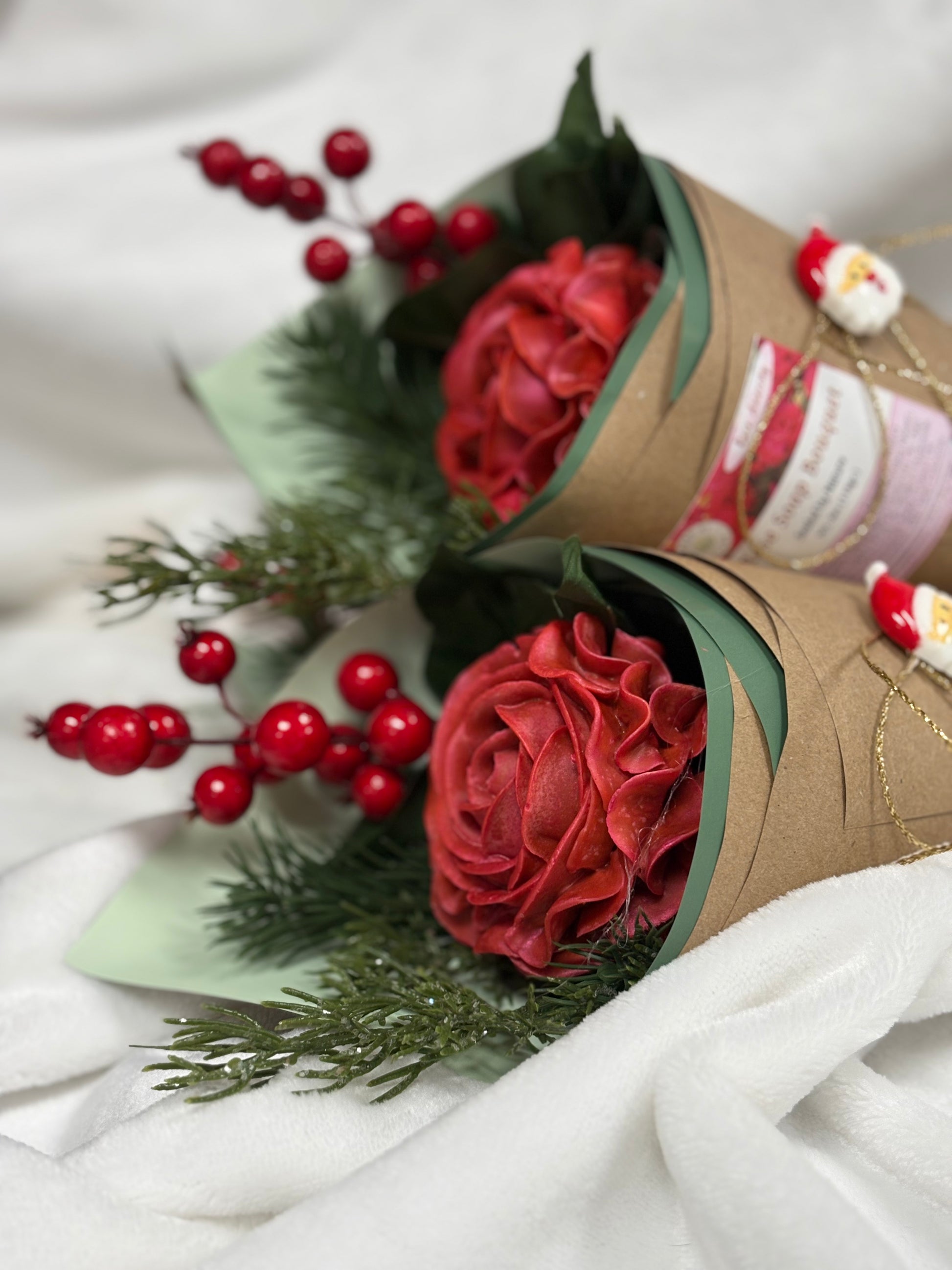 The "Red Rose" Soap Bouquet makes a thoughtful and practical gift—a decorative piece that doubles as a luxurious skincare essential. Elevate your loved one's cleansing experience with the timeless elegance and aromatic bliss of our "Red Rose" Soap Bouquet.