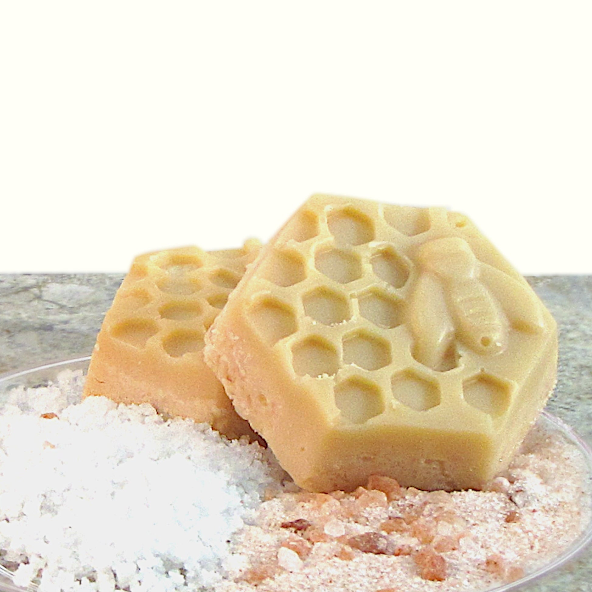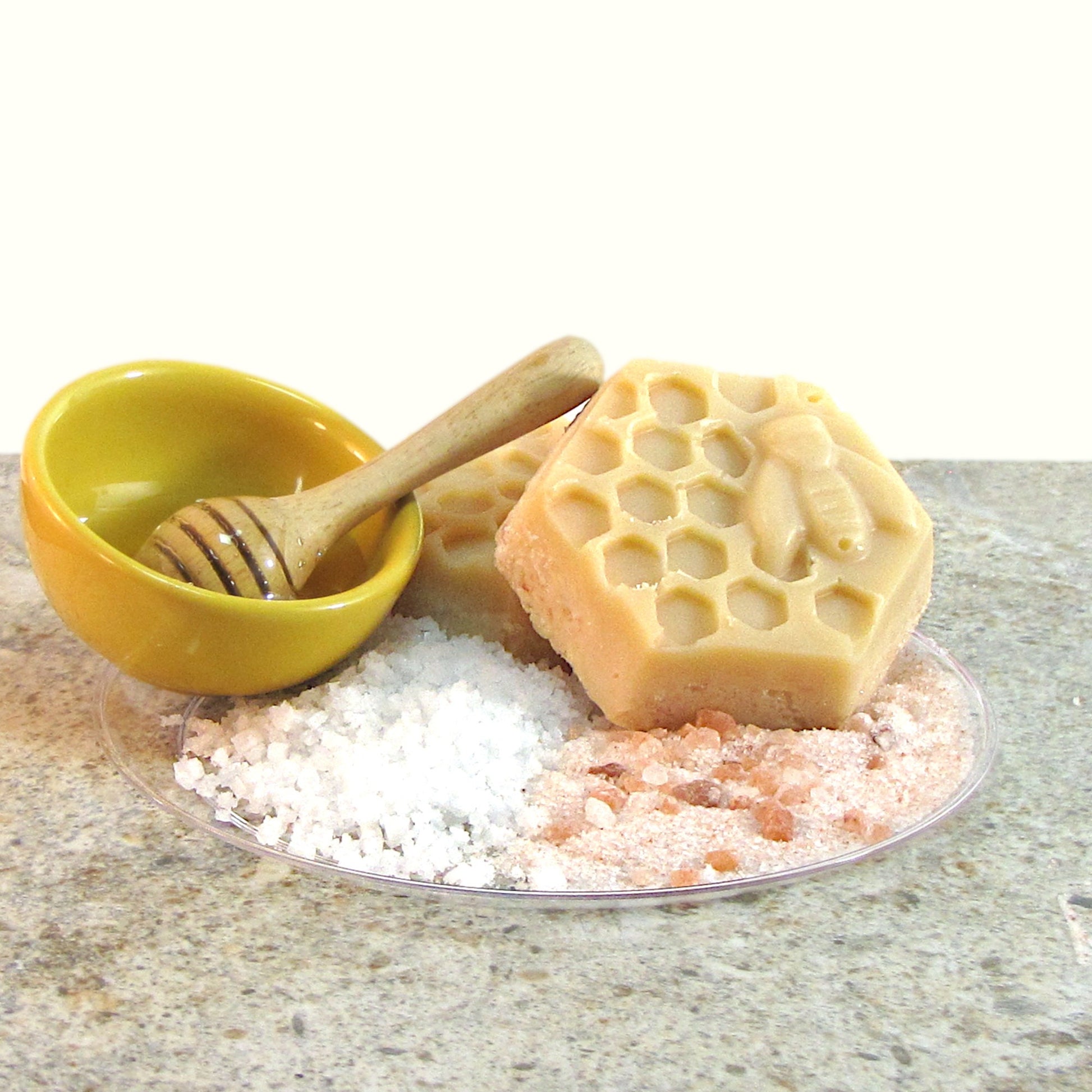 Ingredients: Sodium Chloride (Coarse Sea Salt & Himalayan Pink Salt), Olea Europaea (Olive) Oil, Cocos Nucifera (Coconut) Oil, Aqua (Distilled Water), Lye (Sodium Hydroxide), Elaeis Guineensis (RSPO Sustainable Palm) Oil, Ricinus Communis Seed (Castor) Oil, Butyrospermum Parkii (Shea) Butter, Organic Raw Honey, Fragrance, Vanilla Color Stabilizer, Sucrose.